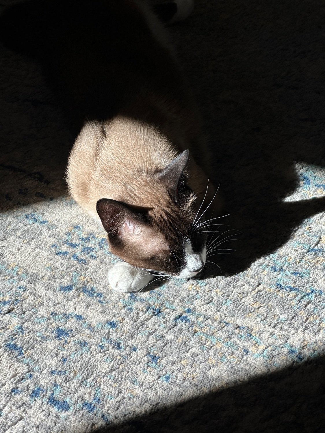 My dumb brain read “nap” as “map”. Suddenly your floor (rug? carpet?) became a huge map of some unknown land, and your kitty was planning its do-meow-nation.
