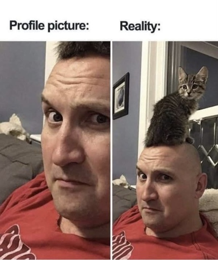 Exactly what i think, the right picture is authentic and shows a person thats willing to do some silly stuff. The left one is just a run of the mill dude.