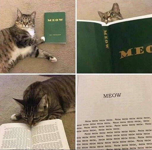 The passage on page 33, paragraph 2, line 3 where the author states: “Meow meow meow meow, meow meow meow meow meow!”