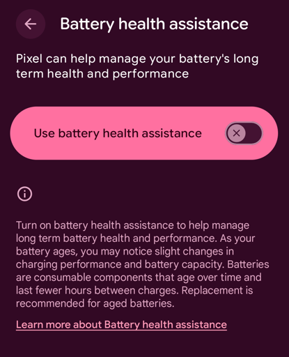 I’ll do a few more full charge sessions but we have a tentative culprit. Google seems to have introduced a battery capacity cap under this setting, presumably to extend the cycle life of the battery.