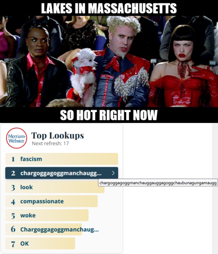 Komodo Rodeo@lemmy.world to Memes@lemmy.mlEnglish · 3 months agoLake Chargoggagoggmanchauggagoggchaubunagungamaugglemmy.mlimagemessage-square5linkfedilinkarrow-up126arrow-down18file-text