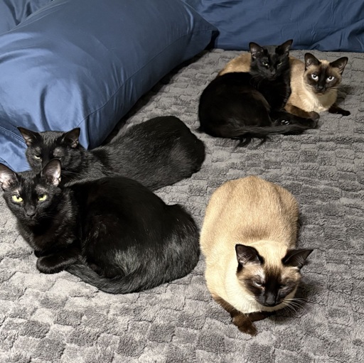 The one in front is Weenie. Leonard is behind him. Their faces are shaped differently so if they’re in decent lighting it’s not too difficult. They are my boys, and the other three are my girls.