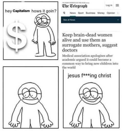 ☆ Yσɠƚԋσʂ ☆@lemmy.ml to Memes@lemmy.mlEnglish · 2 months agoHey capitalism how's it goin?lemmy.mlimagemessage-square49linkfedilinkarrow-up1206arrow-down15