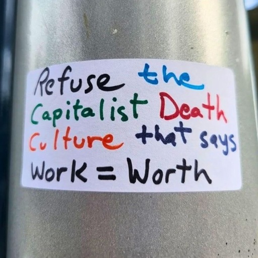 It doesn’t say refuse work. It says refuse the concept that a person’s worth is linked to how much or what type of work they perform.