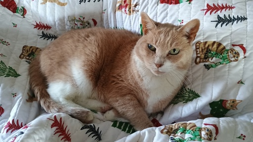 We just got gifted this quilt. Meow-meow has decided she’s all about it.