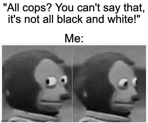 Not speaking up or pushing against policies and such that target specific groups of people because that’s the way we’ve always done it makes you a bastard still. We all know there’s probably one or two good cops per department/precinct that truly wish and do help people when they can. But they’re silenced for the sake of their job speaking out against the mistreatments and policies.