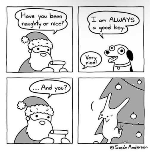 Santa, to cat: Understandable. Here, a box.
