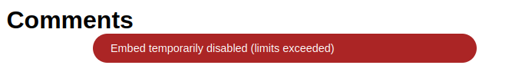 SMBC comics have a comments section, run by Hyvor Talk. It used to work great, but after SMBC parted ways with the Hiveworks Comics, it seems the Hyvor Talk service tier was downgrade massively and now it shows the error “Embed temporarily disabled (limits exceeded)” almost all the time. Only on the first day or two of every month, the limits reset and we can both post and read comments again.