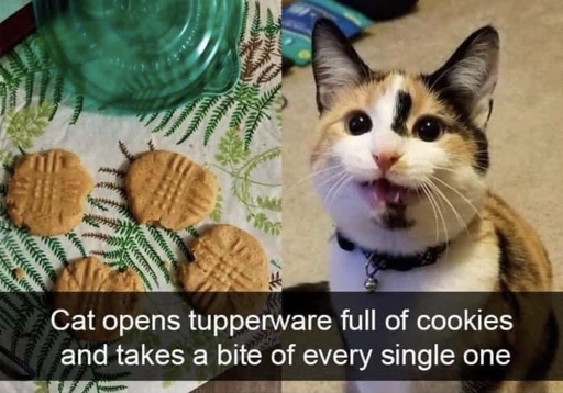 Sure, cat takes a bite out of every cookie it’s adorable, but when I do it I’m “an asshole” and “need to learn self-control” and “that’s not how QA works”