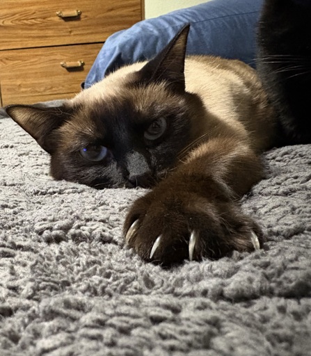 I’ve seen this move before! lays down similarly and slow blinks back at them