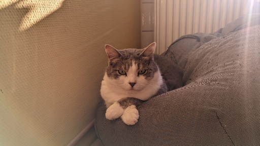 cats@lemmy.world•Yanked out damaged blurry lenses on my Moto G84, feels much better now, so here's an obligatory cat photo.English